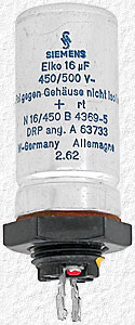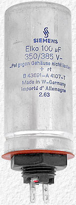 | 350V | 8 mfd | 1 | Siemens/Elko −20/+70°C | 5/8" dia. x 2-3/8" | $2 |