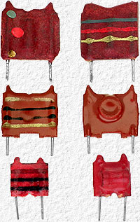 I've begun listing some of my smaller inductors below, but will likely never finish with so many types and over 2700 from 0.01 uhy to 1000 mhy so let me know if you don't see what you need and I'll get back to you with what I have. – I indicate in 'Notes' when an image is of the actual inductor(s), but most simply show the style / type of inductor. – Some of the used inductors have leads nearly as long as a new one, but most were removed from PC boards so have leads about 1/4" to 3/4" long depending on the type and size of inductor. |