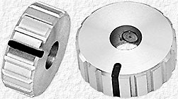 15/16" dia. x 11/16" Very nice with hidden mounting screw under the 'Press-On' top that adjusts griping pressure on shaft. Qty: 2 |