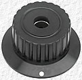 #T14 | 1" dia. x 1-3/8" wide x 3/4" tall (Same as the one shown which originally had a metal insert like T15, but without the center-shaft thru-hole that someone added.) |