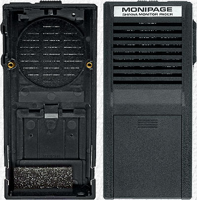 NEW Shinwa MONIPAGE Monitor Pager case front This case is ≈ 5/8" deep and has 2 threaded inserts that make it easy to attach a flat plastic rear panel and turn this into a very nice project case. The front slide open battery access panel is nice in that it could be used instead to conceal switches or what ever else one wanted. Qty: 1 |