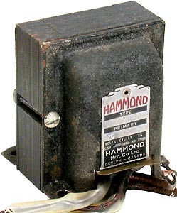 | 6.3VCT | 4.0A | 25va | G | 1 | 167E60 | Hammond (M) | 120 | Old version of 166N6. Photo is of another unit with a modified shell, but shell on this one has no opening cut in it. 1.10kg 2½" × 2⅝" × 3"h |